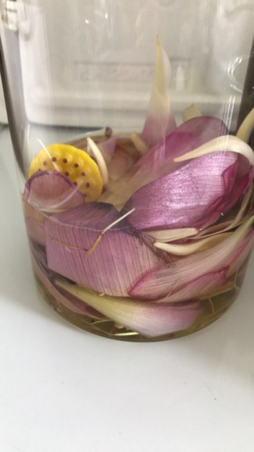 冷凍でとっておいたローズの花びらをPureStiller mini で煮出し蒸留。袋から出した時も良い香りがしていました。今回は銅ウールも使用し蒸留。ローズウォーターが採れました。加水 850ml。