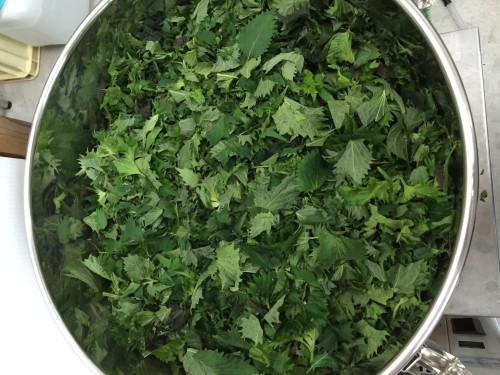 シソの葉(フレッシュ)の蒸留です。蒸留器は36Lを使用し加水は6L。シソ科の植物は抽出率があまり高くないのですが、こちらのシソは葉の裏にある油胞を出来るだけつぶさない様に摘まれたシソ。抽出率0.36%は かなり良い数字です。ウォーターもシソそのもののの香でとても良い香りです。蒸留時間120分。