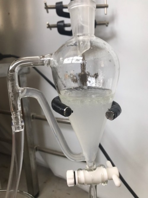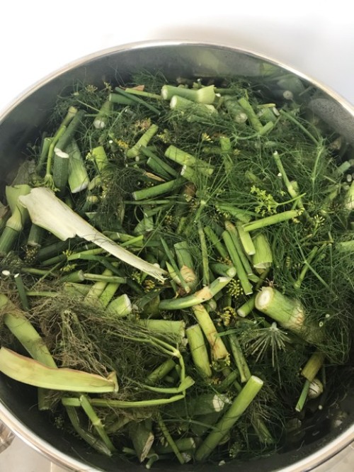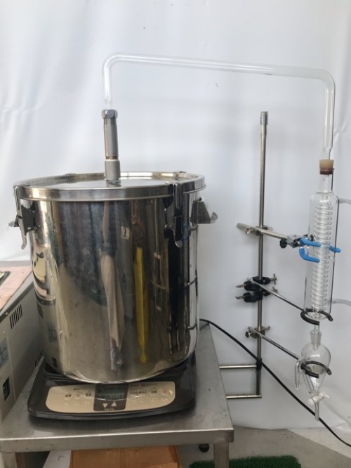 黄河のフェンネル大きくなりすぎて倒れかけていたので茎と葉で蒸留。本来フェンネルの抽出部位は種子だが茎や葉にも精油成分はあるようです。ウォーターは白く濁る。加水6L。蒸留時間90分