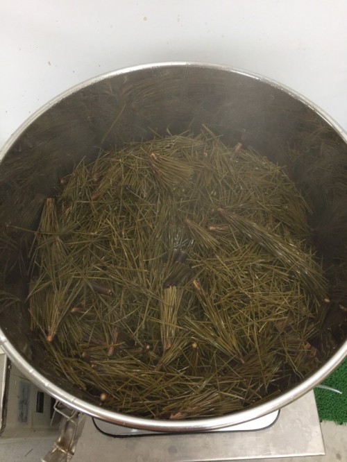 松の葉の蒸留。透明な精油。すっきりとした香り。