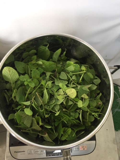 黄河のオーデコロンミント。かなり茂っていたので刈って蒸留。メッシュ無し水多めの4.5Lで蒸留。ロングオイルセパレーター使用。精油2ml採れた。スッキリとした香りの中に甘い香りを含む。普通のトップノートが多いミントよりちょっと濃厚な香りが後を引く香り。