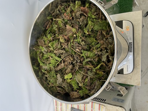 収穫後少し乾燥させて冷凍したシソの葉。届いたときは葉が変色しているものが多かった。45mlオイルセパレーター使用。精油思った以上にとれている。少し乾燥させていたのが余分な水分が取れて収率アップにつながったのか。香りも良い。
