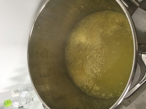全体量7310g 果皮のみ800g ピーラーで皮むき1名55分。皮をむく時に出るオイルも無駄なく採取するため 水を張った容器の上で皮をむきます。剥き終わったら、その水も加水に加える。果皮のみフードプロセッサーで粉砕して蒸留釜へ。この材料では果皮のみあと3~4倍程度入る。加水15L。蒸留時間120分