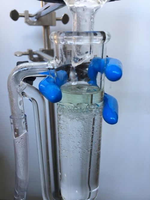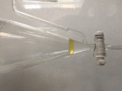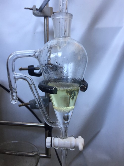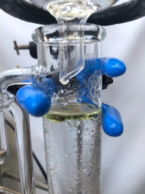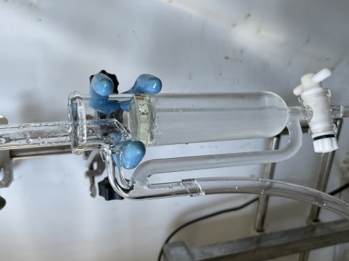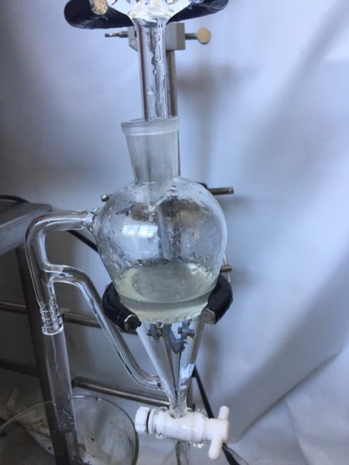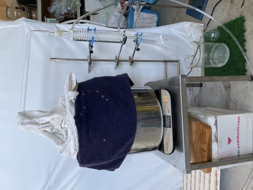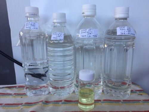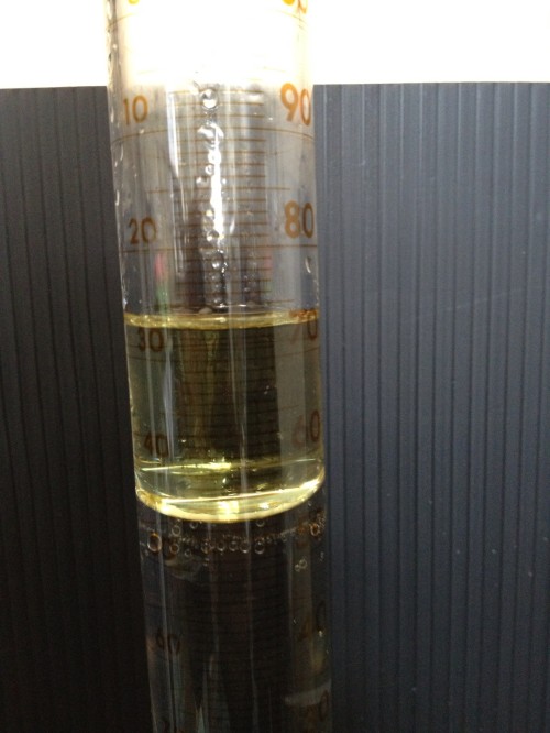 65Lsus 冷却器ガス直火。500mlオイルセパレーター使用。ウィーターは白い。 オイルに粘性がありオイルセパレーターに付く。蒸留時間120分。加水13L