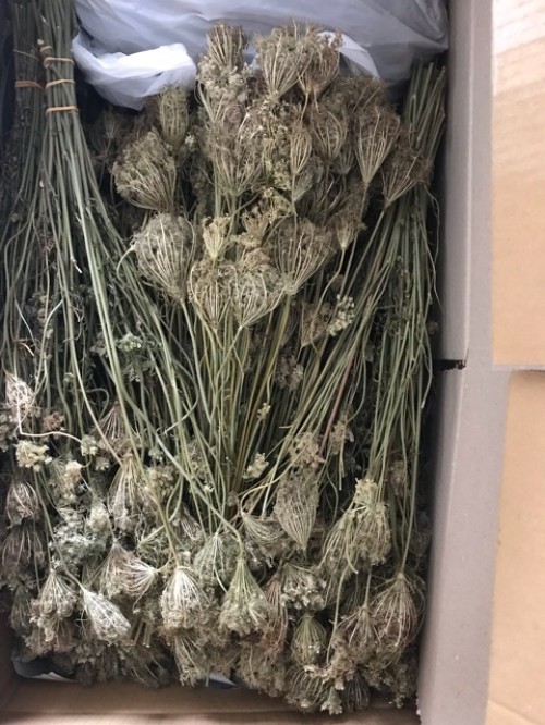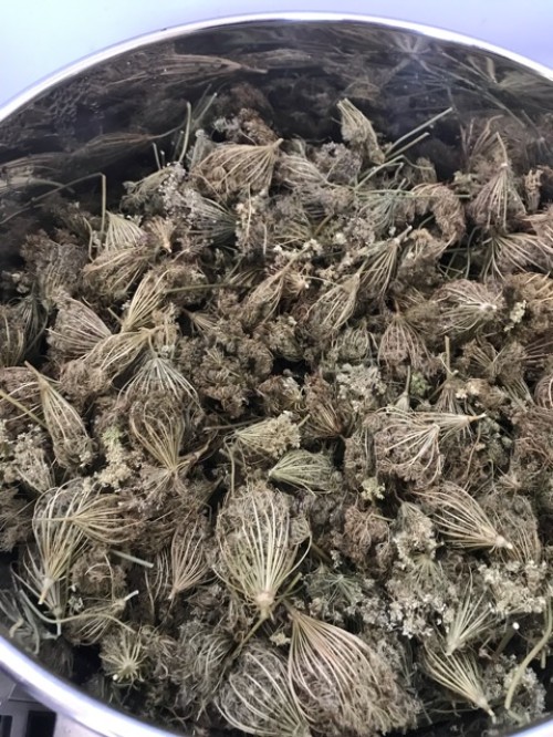 夏に刈り取ったワイルドキャロットをドライにしてあったものを蒸留。ワイルドキャロットは蒸留部位は種子となっているので花先と茎に切り分けた。2名で30分。花先だけをスチーム蒸留。5mlの精油が採れた。黄色いオイル。加水6L。蒸留時間120分。