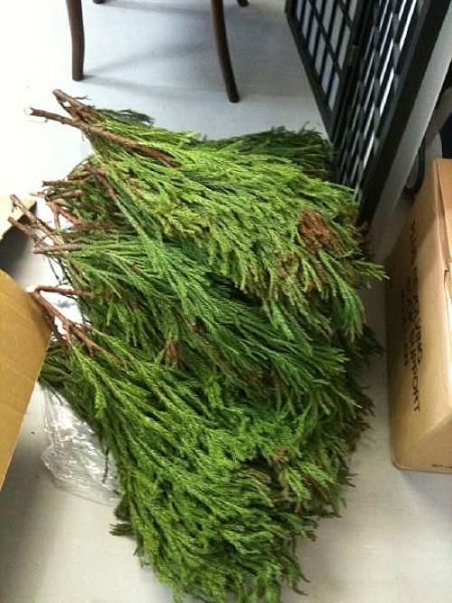 コウヤマキの枝葉をハサミで4~5cmにカットして蒸留。加水6L。蒸留時間120分。