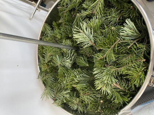 加水6.5L。北海道のトドマツの葉小枝 15kg送付。 カットしてあったが ハサミで4,5cm程度にカットしてから蒸留釜へ。棒などで蒸気の通り道を作ってあげる。オイルが少しずつ増えるため150分蒸留実施。さわやかな香り。1%以上採れた。香りが落ち着くと良い香りになりそう。