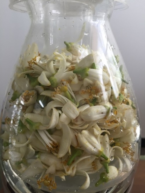 5月 ネロリが咲くこの時期だけのフレッシュネロリでの蒸留です。加水は300ml オイルは採れませんでしたが芳醇なネロリウォーターが採れました。