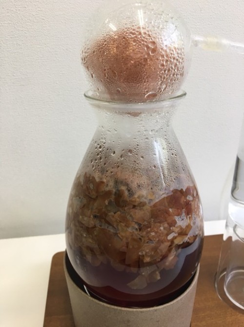 冷凍でとっておいたローズの花びらをPureStiller mini で煮出し蒸留。袋から出した時も良い香りがしていました。今回は銅ウールも使用し蒸留。ローズウォーターが採れました。加水 850ml。