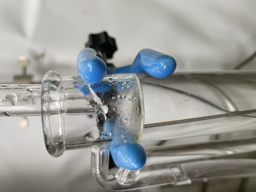 タケの粉末にレモングラス5%混ぜたものの蒸留。10%混と比較(ミックスされたもの)今回3kgで釜6割程度5kgまでは入りそう。45mlオイルセパレーター使用。蒸留水は、①~④までタケの蒸留水にレモングラスの香りが入ってよい香り。精油は極々少量はあるのだろうが、取り分けられるほど確認できるものはない。上澄みを取り分けた。