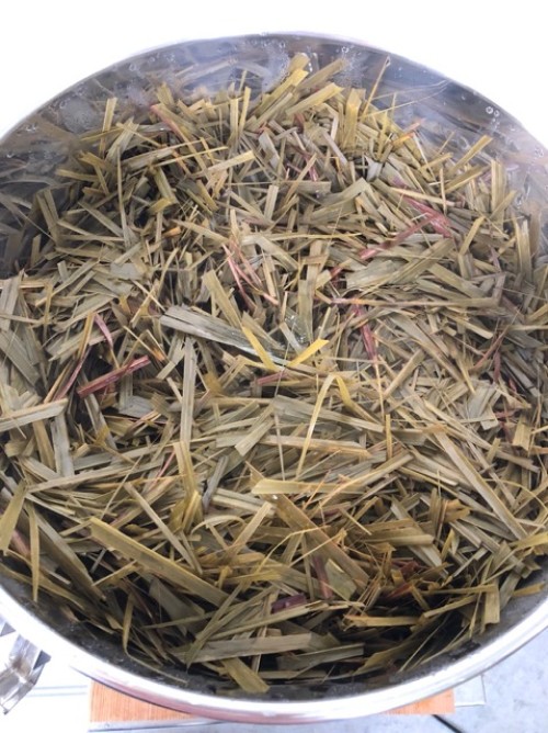 レモングラス(フレッシュ)全草の蒸留です。3~5cmにハサミでカットしてから蒸留。香りもとても良く、抽出率も良かった。蒸留時間120分。