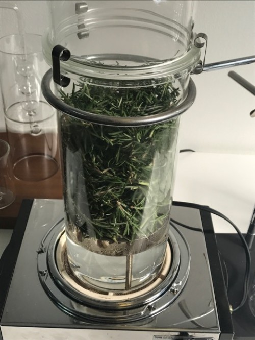 会社で栽培しているローズマリーをLiteで蒸留。加水600ml。蒸留時間60分。