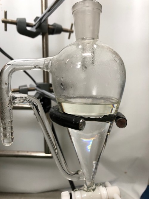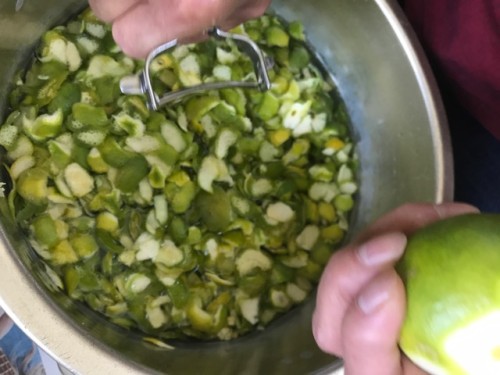 せとか摘果果皮を蒸留。果実全量8.8kg。ピーラーで果皮を剥く時にも精油が飛んでしまうので、水を少量ためた中に剥いていきその水も加水の時に使う。剥いた果皮をフードプロセッサーで粉砕し水と一緒に釜に入れて煮出し蒸留。果皮のみ1kgで割とサラサラとした状態 加水7.5L。蒸留時間120分。