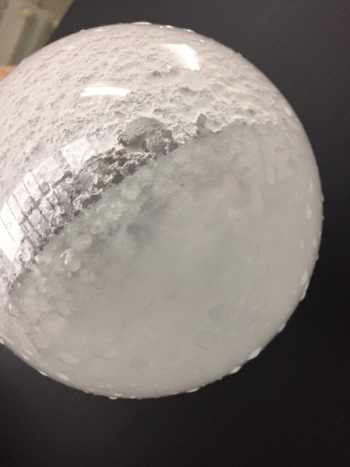 クスノキチップの蒸留。新鮮なのか送られてきた時からカンファーの香りがとても強かった。クスノキは、結晶化するので通常の蛇管式の冷却器ではなく直管の冷却器を使用する。直管冷却器を1L丸フラスコで受けて後からロートで結晶を濾過し分液ロートに蒸留水を分ける。濾過した結晶は紙にはさんで水分を取り除き結晶を取り分ける。結晶が多く直管冷却器の中にも結晶が溜まっていくので、冷却水は流さないで丸フラスコを冷やす。加水6.5L。蒸留時間90分。