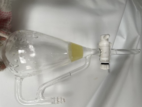 スギ板10cm角送付されてきたそのままの形で蒸留。釜の中に蒸気が通るように交互にきれいに並べて入れた。通常木部の蒸留は、チップ状やオガコの状態で行うが板の状態でも精油が採れるのか・・・木材が大きいので蒸留時間180分まで実施。板の状態でも少量だが精油が採れた。黄色い粘性のあるオイルが採れた。