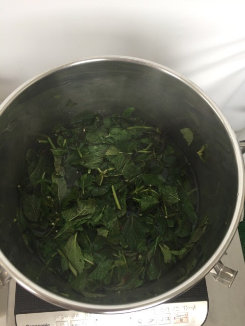 ペパーミント ドライをスチーム蒸留。3kgで36L蒸留釜に満タン。
