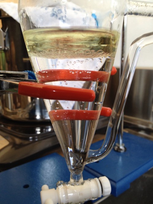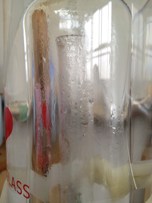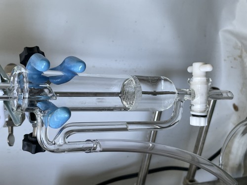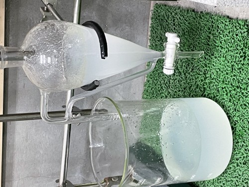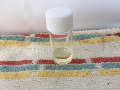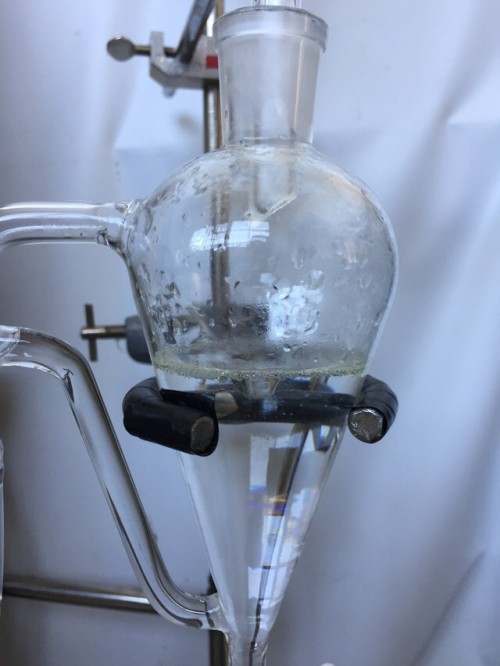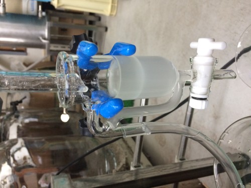 65Lsus 冷却器ガス直火。500mlオイルセパレーター使用。ウィーターは白い。 オイルに粘性がありオイルセパレーターに付く。蒸留時間120分。加水13L