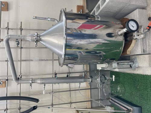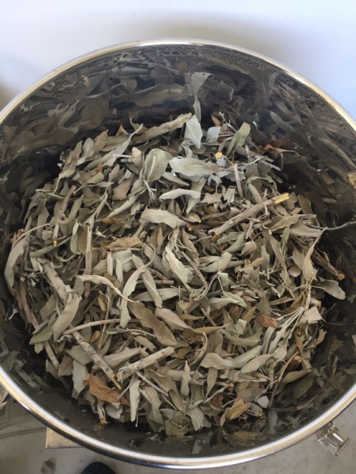 自宅で育てられたホワイトセージ(ドライ)の蒸留。手で茎・葉を折って細かくしてスチーム蒸留。今回36Lで8分目あたり 1kgくらいは入りそう。香り強い。精油も最初に一気に出てきた最初は透明だったが、段々と黄色になっていった。16mlの精油が採れた。加水6.5L。蒸留時間120分。