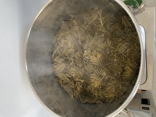 松の枝(木部)の蒸留。10~15cm程の枝。釜の半分程度の量。6kgくらいまではok。葉と同様透明な精油。葉の方がスッキリしている。