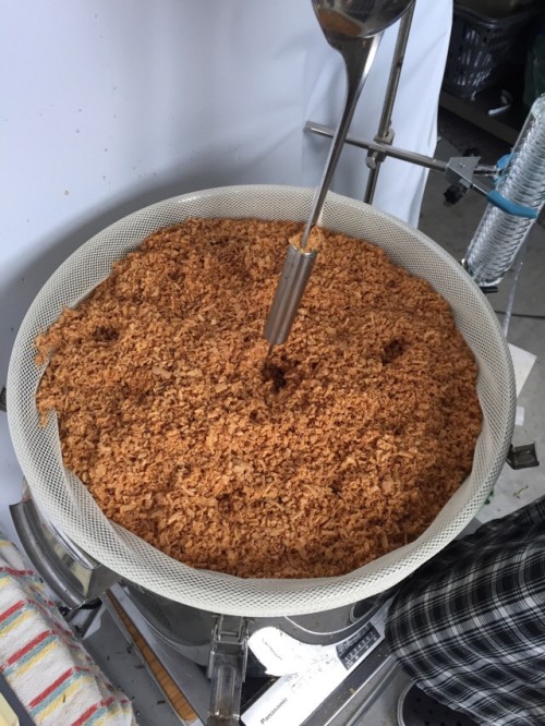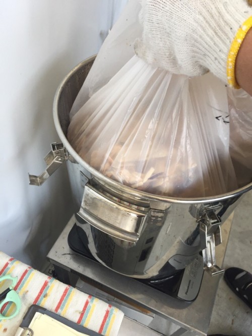 材料が細かくカットしてあったので量的にたくさん入った。加水6L。蒸留時間180分。