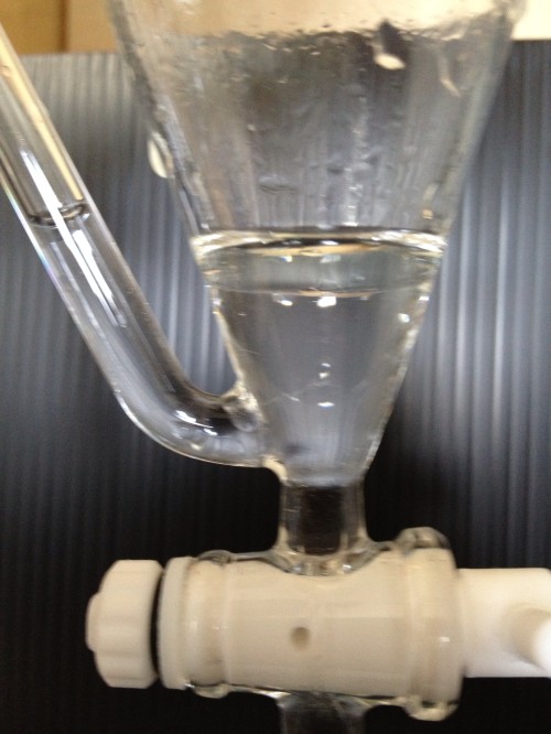 採取したばかりのネロリ(ダイダイの花)を 煮出し蒸留。加水 4L。ネロリはオイルの抽出率が少ないのでロングオイルセパレーターを使用。ロングオイルセパレーターは上部の径が小さいので少量でも上部に溜まりやすく ネロリや月桃、ローズゼラニウムなど精油が少ない材料に適しています。今回は10Lでの蒸留で上部にオイルを確認できました。ウォーターは濃厚な香りです。