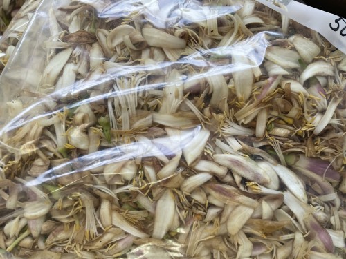 4/1採取された花2500gと予備で3/29に採取された500g ジップロックに入れて送付されたためか花が花の鮮度がおちて茶色になっている。45mlロングオイルセパレーター使用。黄色い精油採れた。少量分析へ。スチーム蒸留。加水6L