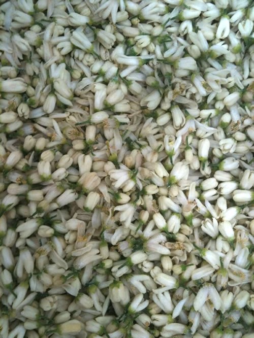 4月から5月にかけて開花したジャスミン を収穫し、5回に渡って、大型ソックスレー抽出器で抽出しました。 それでも花は軽いので合計で450g。 ヘキサン溶液(コンクリート)→ ロータリーエバポレーターによるヘキサン除去 → エタノール 添加、ワックス(蝋成分)除去(濾過) → ロータリーエバポレーターによるエタノール 除去 → ジャスミン abs. 完成!! これらの工程を経て、ジャスミン abs. 2.2046g(from 花450g, 抽出率0.49%) が採れました!