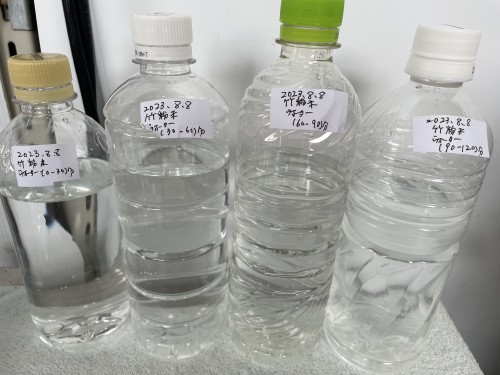 竹を細かく粉末状にしたものの蒸留です。精油はありませんがタケ(竹)の蒸留水が採れます。