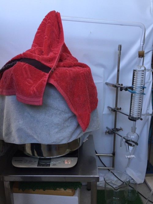 ローズマリー(フレッシュ)を10L鍋で蒸留。加水 3.5L。
