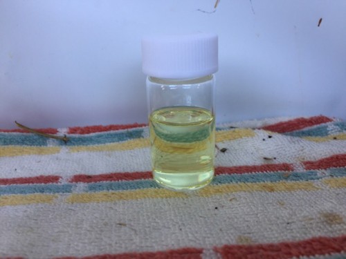 北海道からクールで送られてきたが色が変色しているところが多数あった。材料自体も香りが強い。オレンジ色の精油。タイム(チモール?)と同じような香りがするがタイムほど強い香りではない。